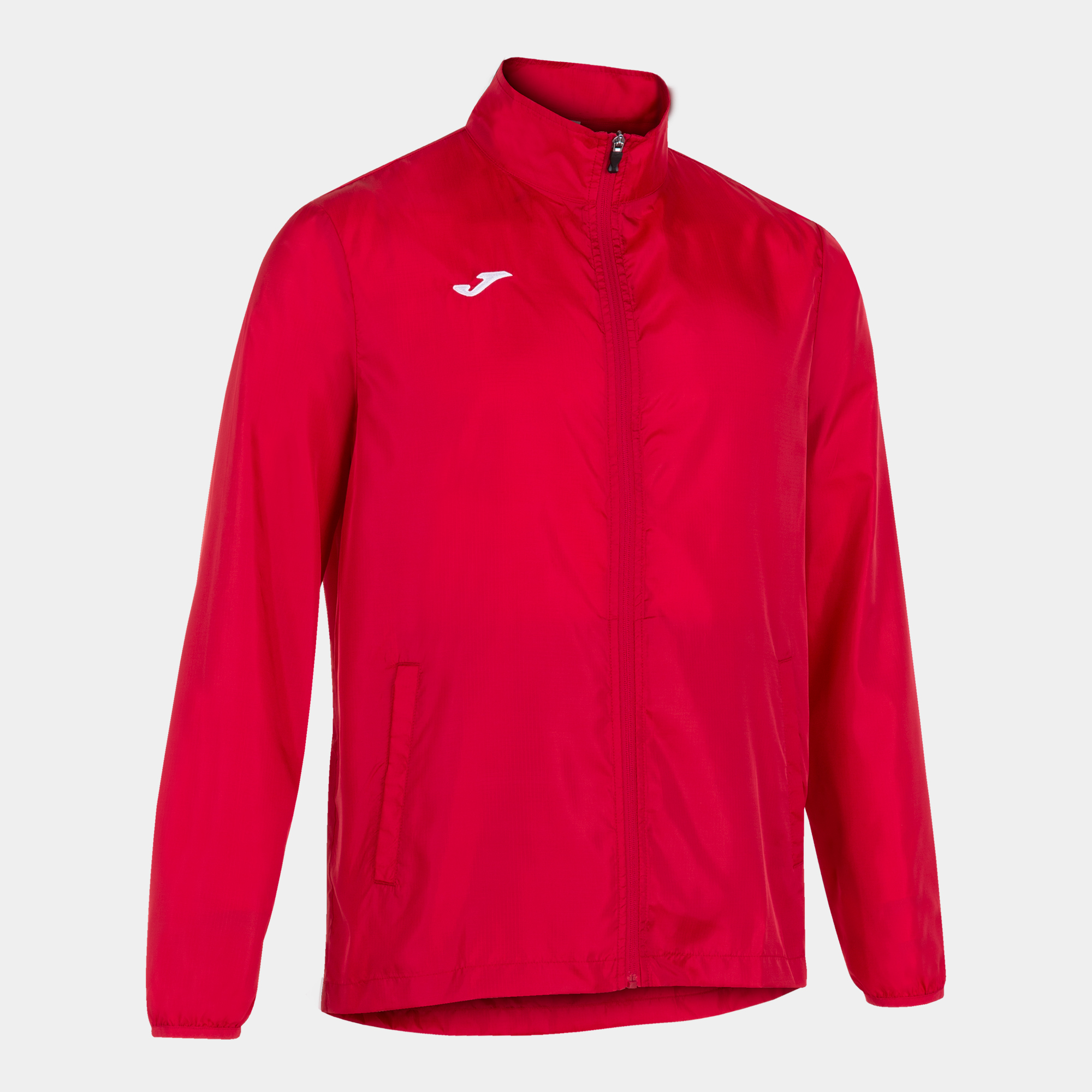 Chubasquero de cuello alto con cremallera frontal. Cuenta con vivo elástico en puños.