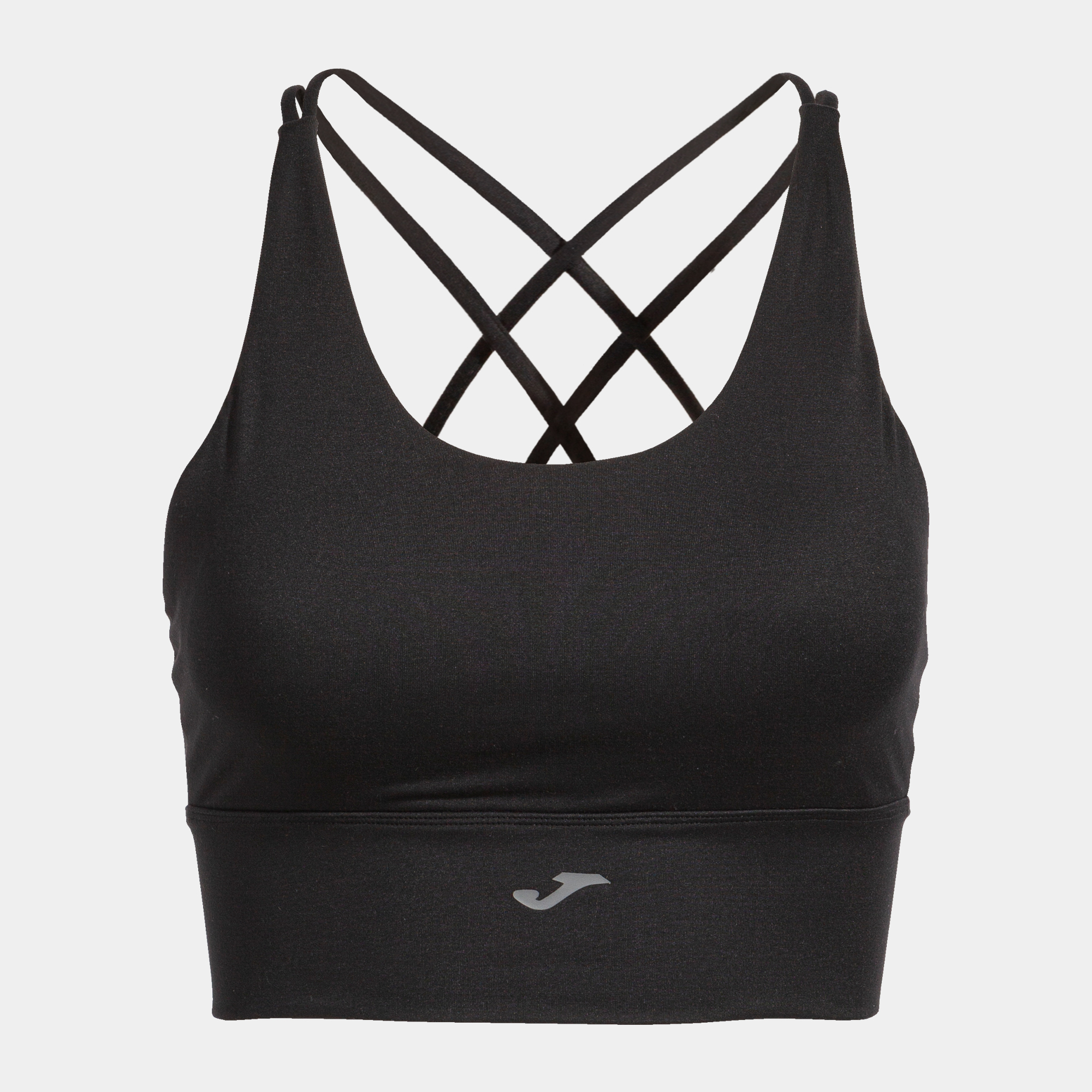 Este sujetador deportivo incorpora, por un lado, tirantes cruzados en la espalda para liberar los omóplatos y proporcionar libertad de movimiento. Con banda elástica que fija el top para que no se deslice por el movimiento y con acabado en tiras en la espalda.